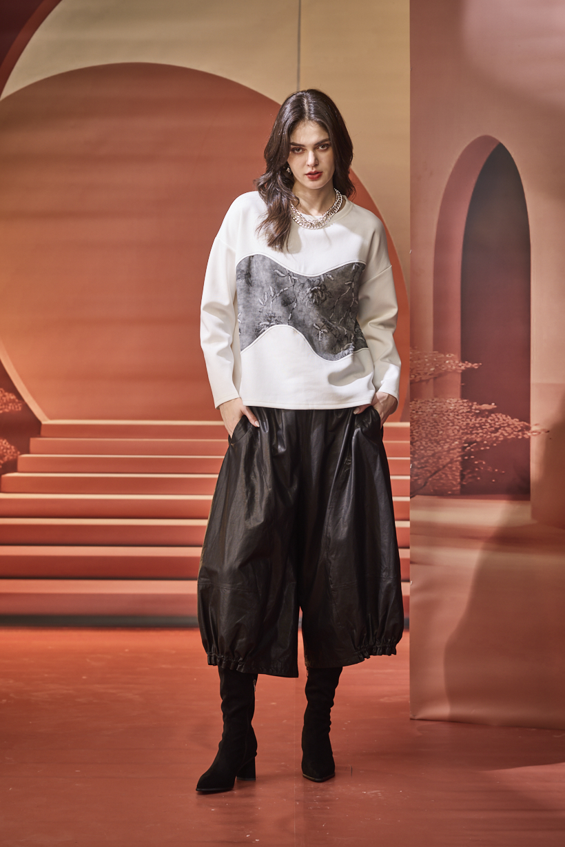 皮革下身,不只是風格配角。 它是光澤、溫度、與力量的交錯。 在結構與柔軟之間,展現屬於你的秋冬宣言。