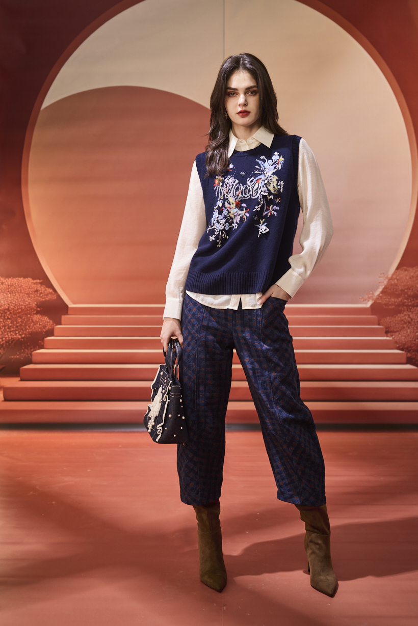 刺繡、珠飾、立體花朵背心,搭配白襯衫、條紋高領或蕾絲領口,就能讓造型瞬間俐落又亮眼。