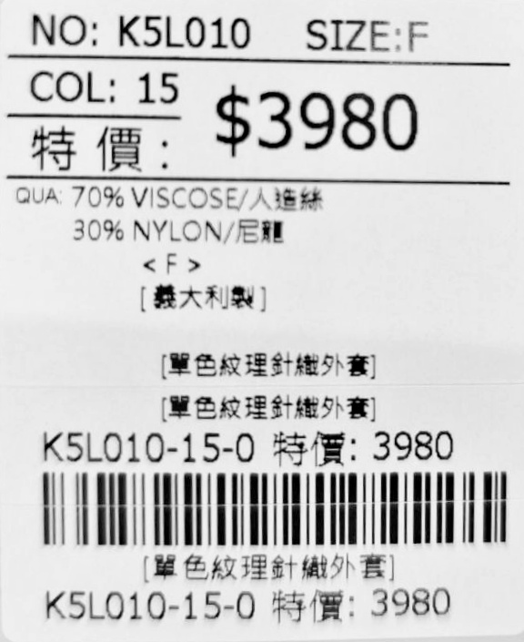 外套K5L010 KA6351 KB7069